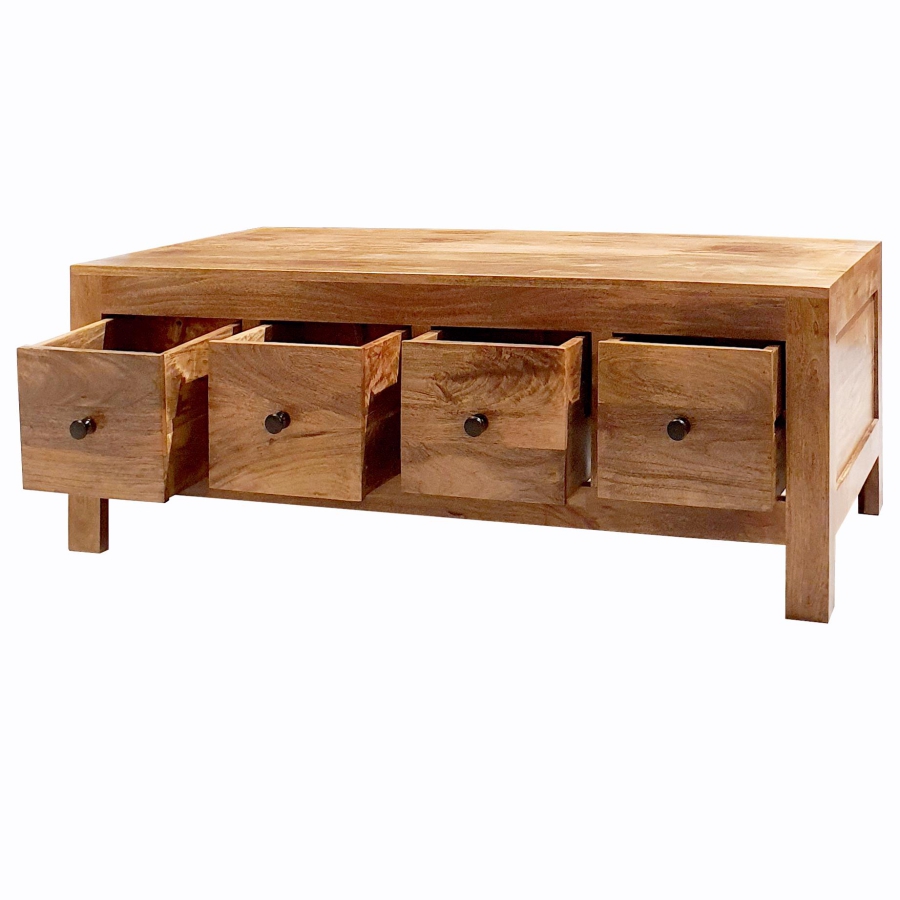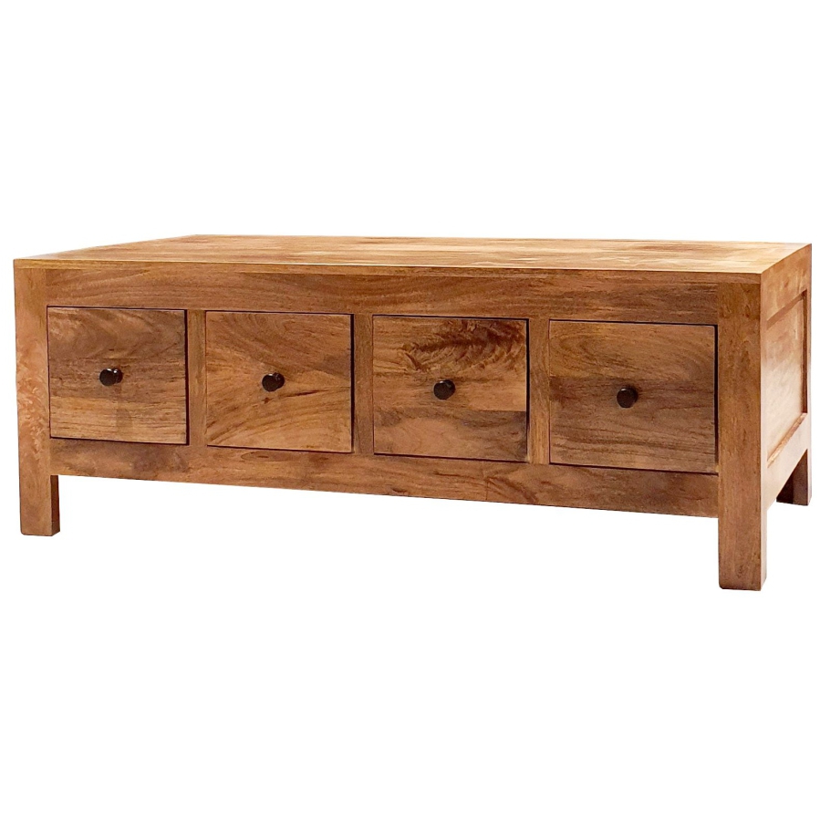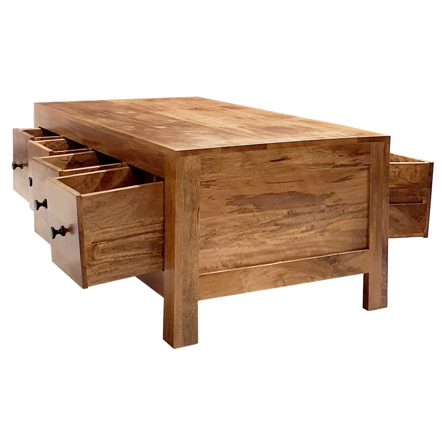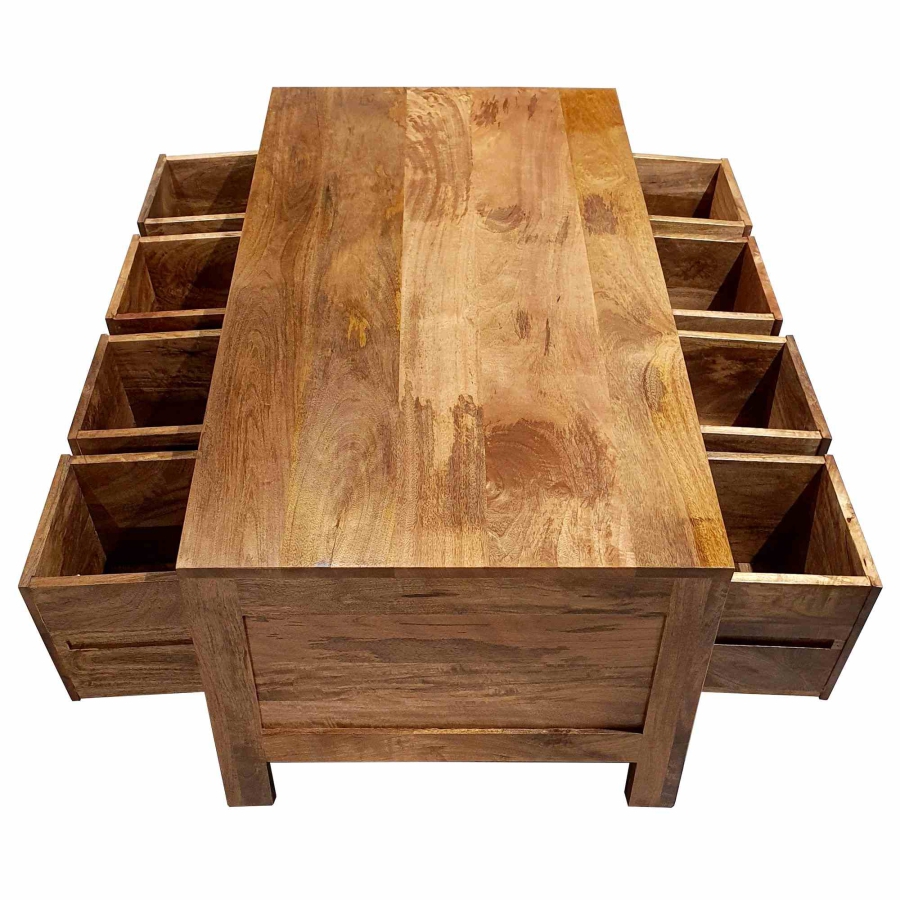 Ein schöner Couchtisch mit acht Schubladen. Sehr praktisch, um Ordnung im Wohnzimmer zu halten.