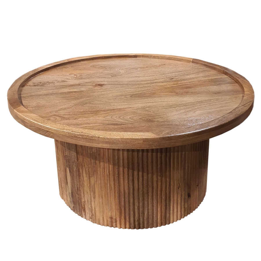 Runder Couchtisch aus Mangoholz im Farbton Toffee