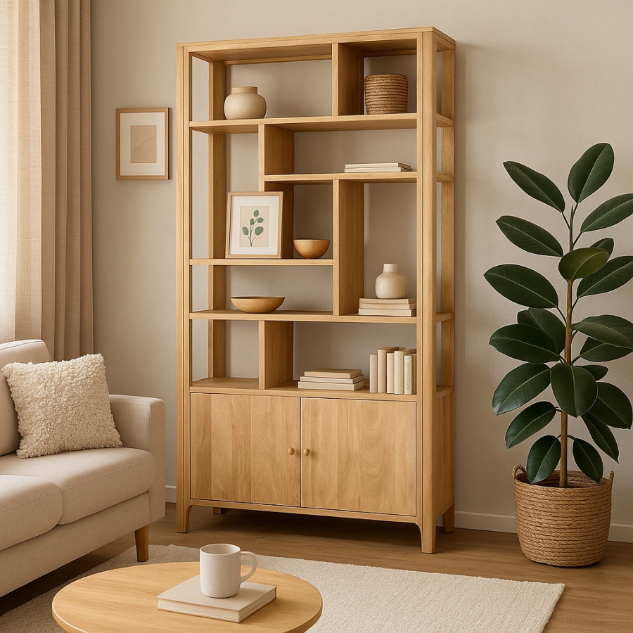 Asymmetrische, offene Holzregale