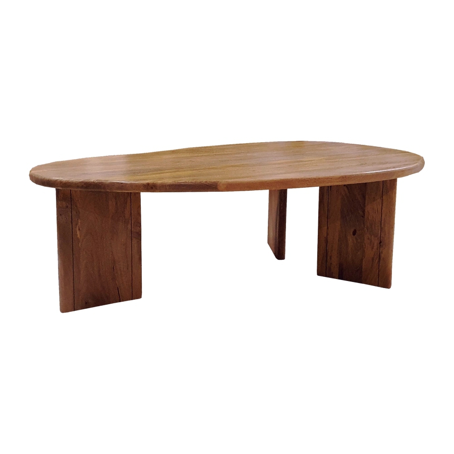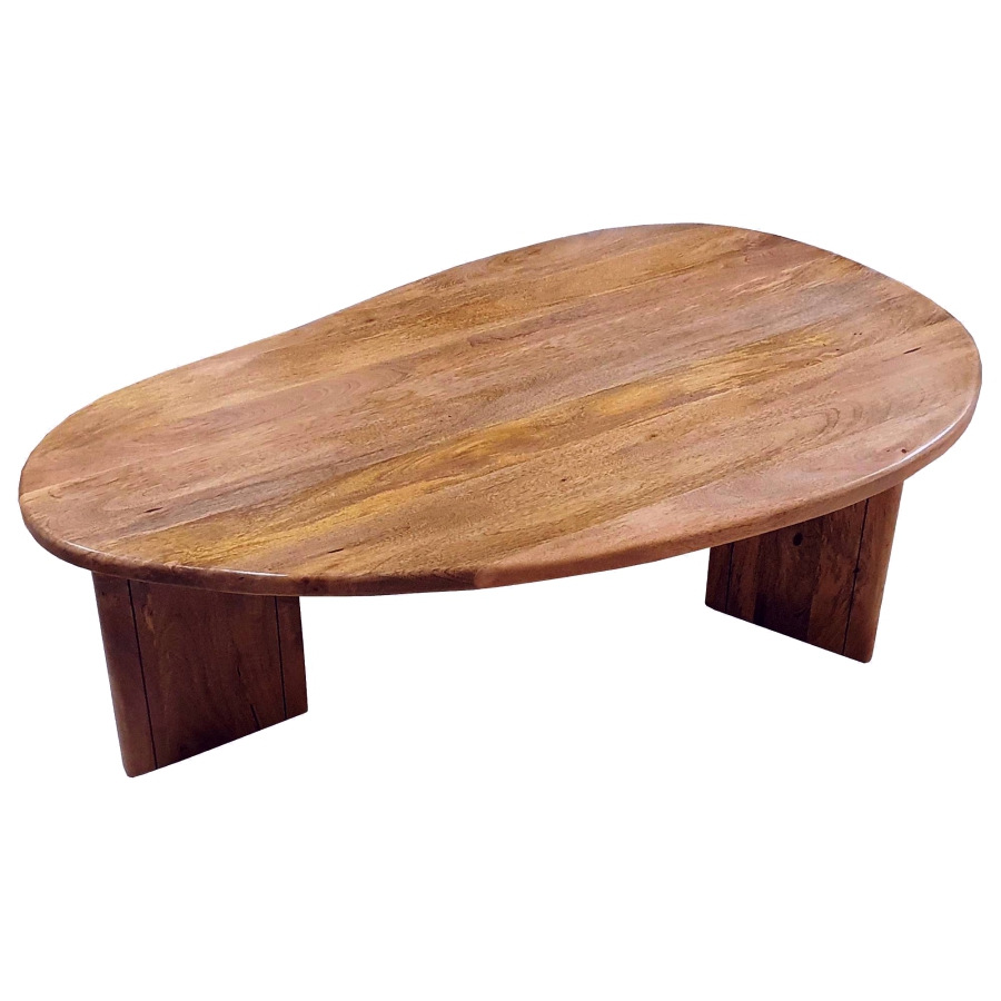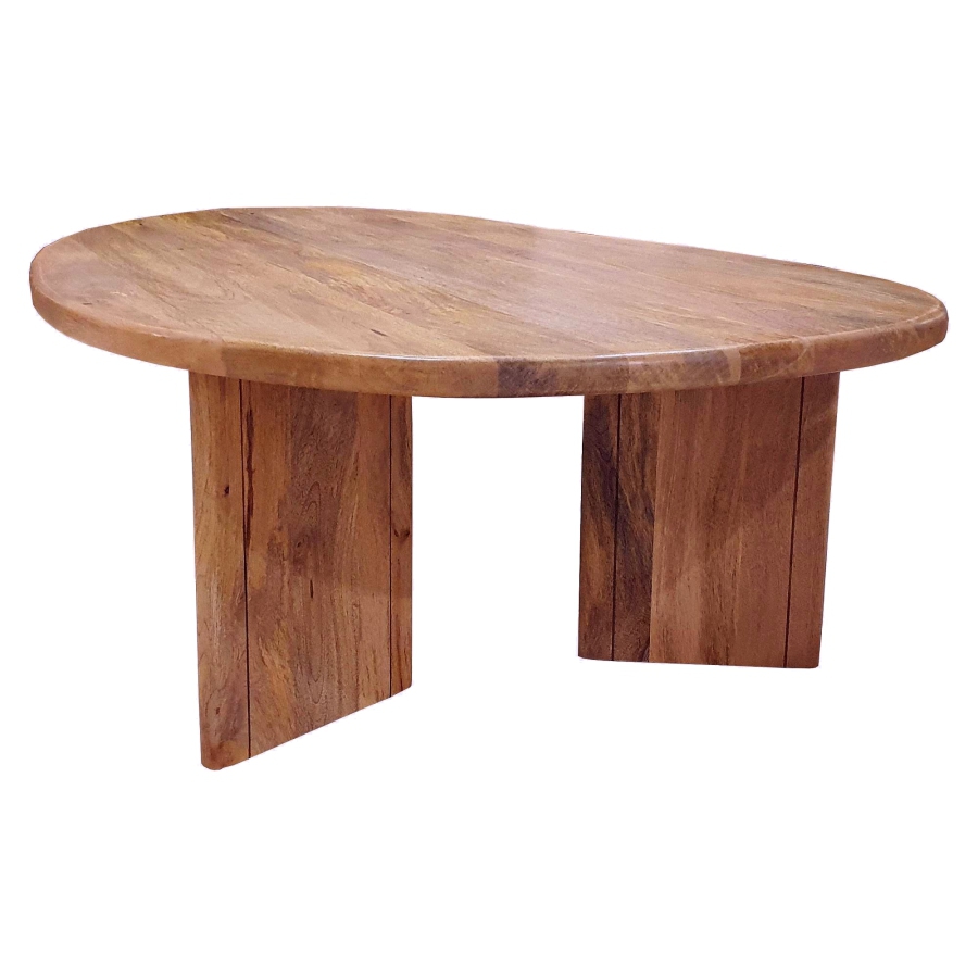 Moderner abgerundeter Couchtisch aus Mangoholz in der Farbe TOFFI