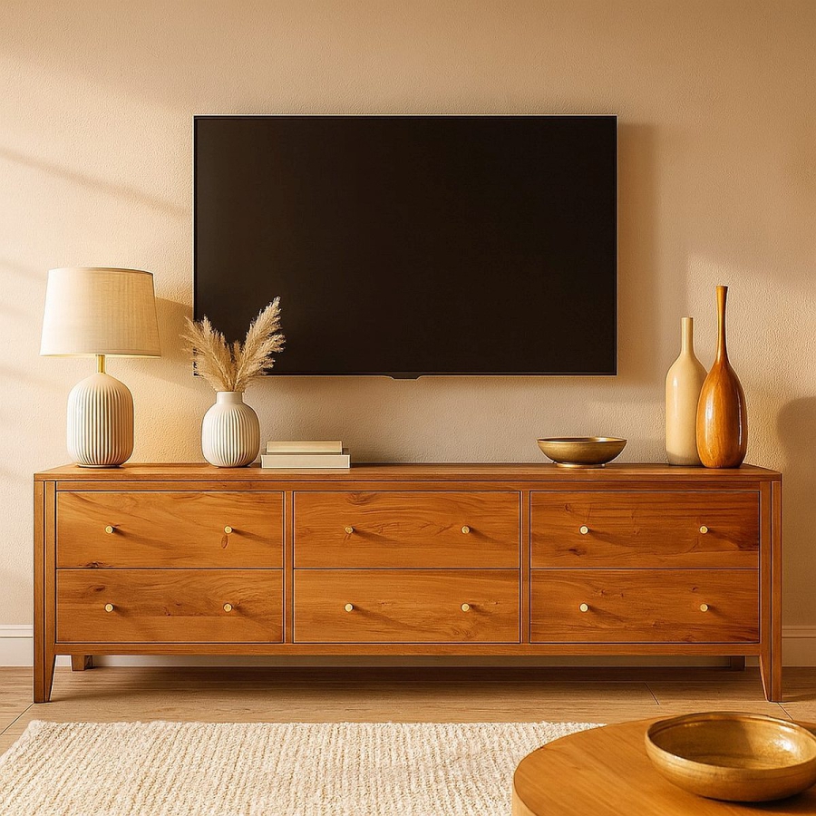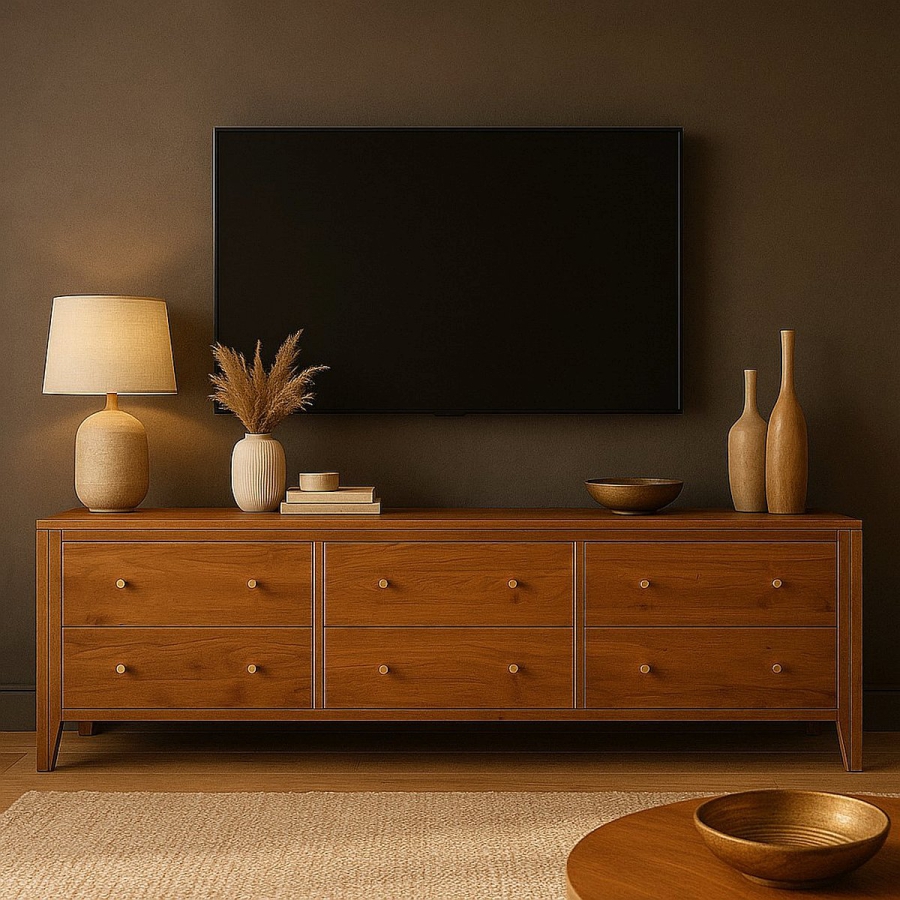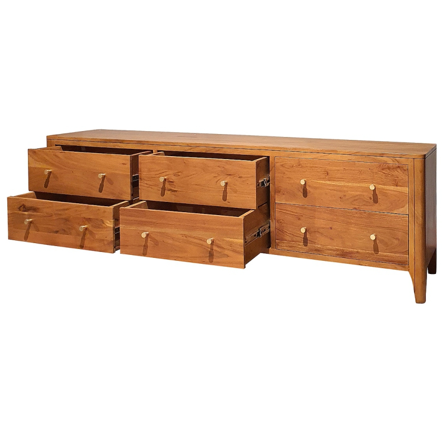 Front pageTYPY NÁBYTKUKOMMODENNiedrige Holzkommode MILANO 175 cm mit Akazienschubladen - Farbe AMBER